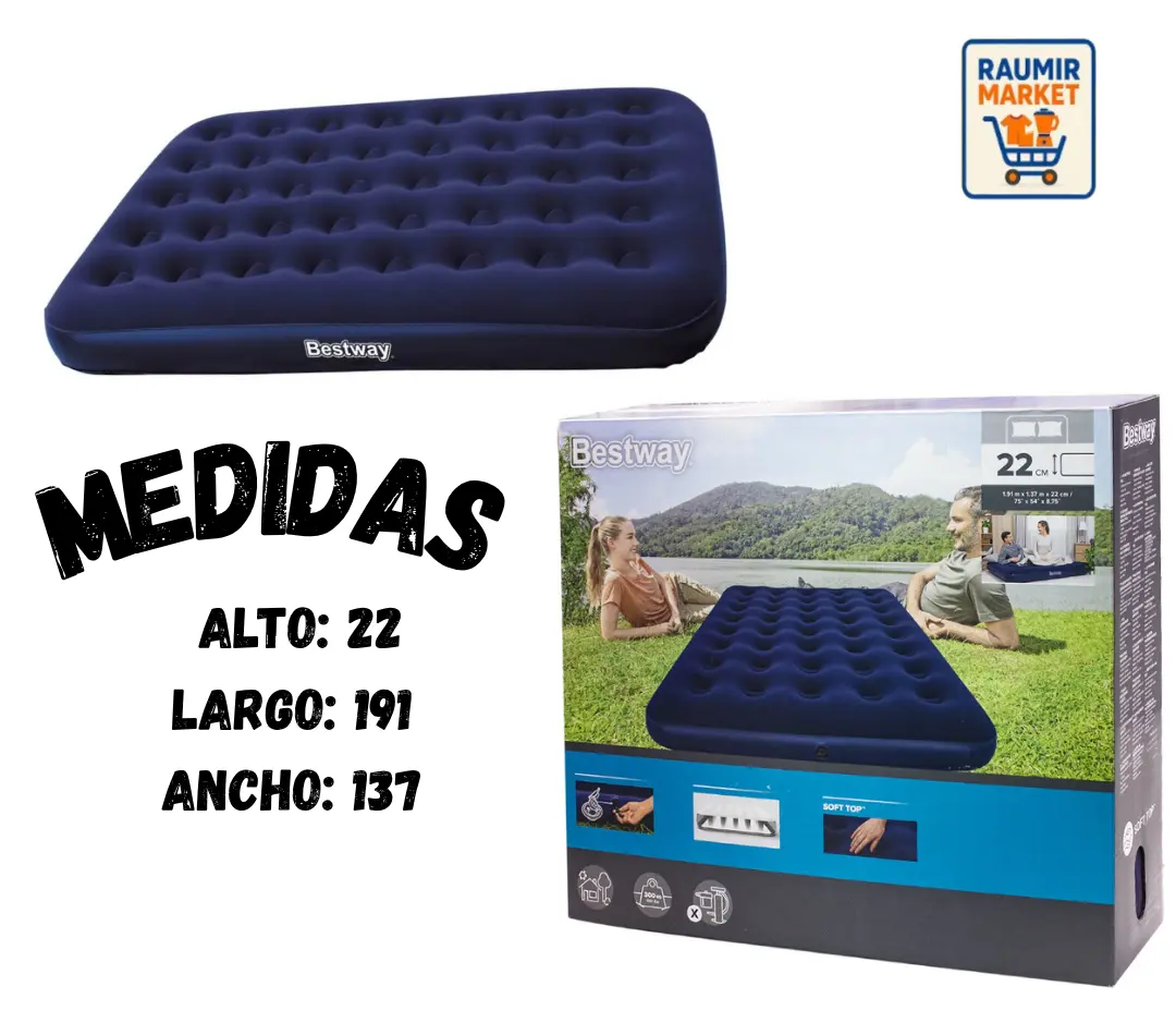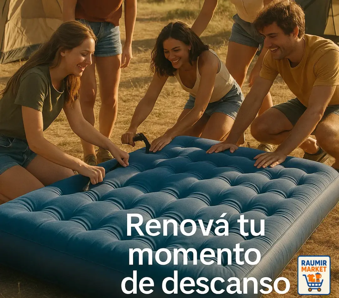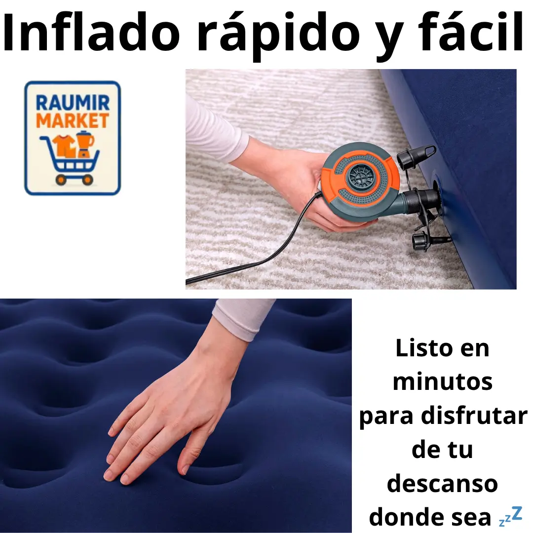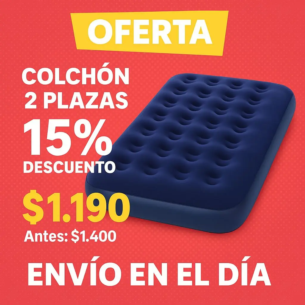 Aprovechá el 15% OFF en este colchón inflable 2 plazas. Súper cómodo, resistente y perfecto para invitados, camping o descansar donde quieras.
